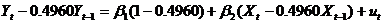 =0.4960,对原模型进行广义差分,得到广义差分方程