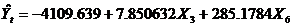 ,X6参数的t检验不显著,予以剔除,加入X2回归得